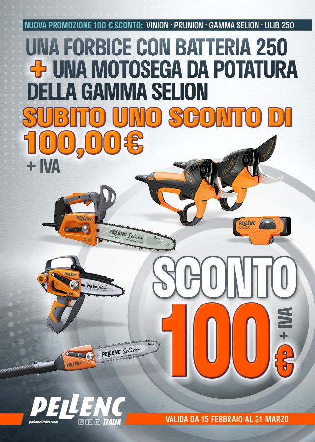 PROMO KIT ARBORICOLTURA Ortogiardino | Pubblicato il 24 Febbraio 2019 | PROMO KIT ARBORICOLTURA Con l’acquisto di una vinion o una prunion con batteria 250 + una motosega gamma selion subito uno sconto di 100.00 € + iva