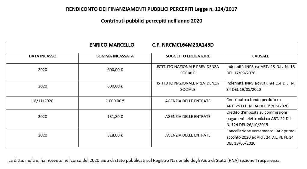 RENDICONTO DEI FINANZIAMENTI PUBBLICI PERCEPITI