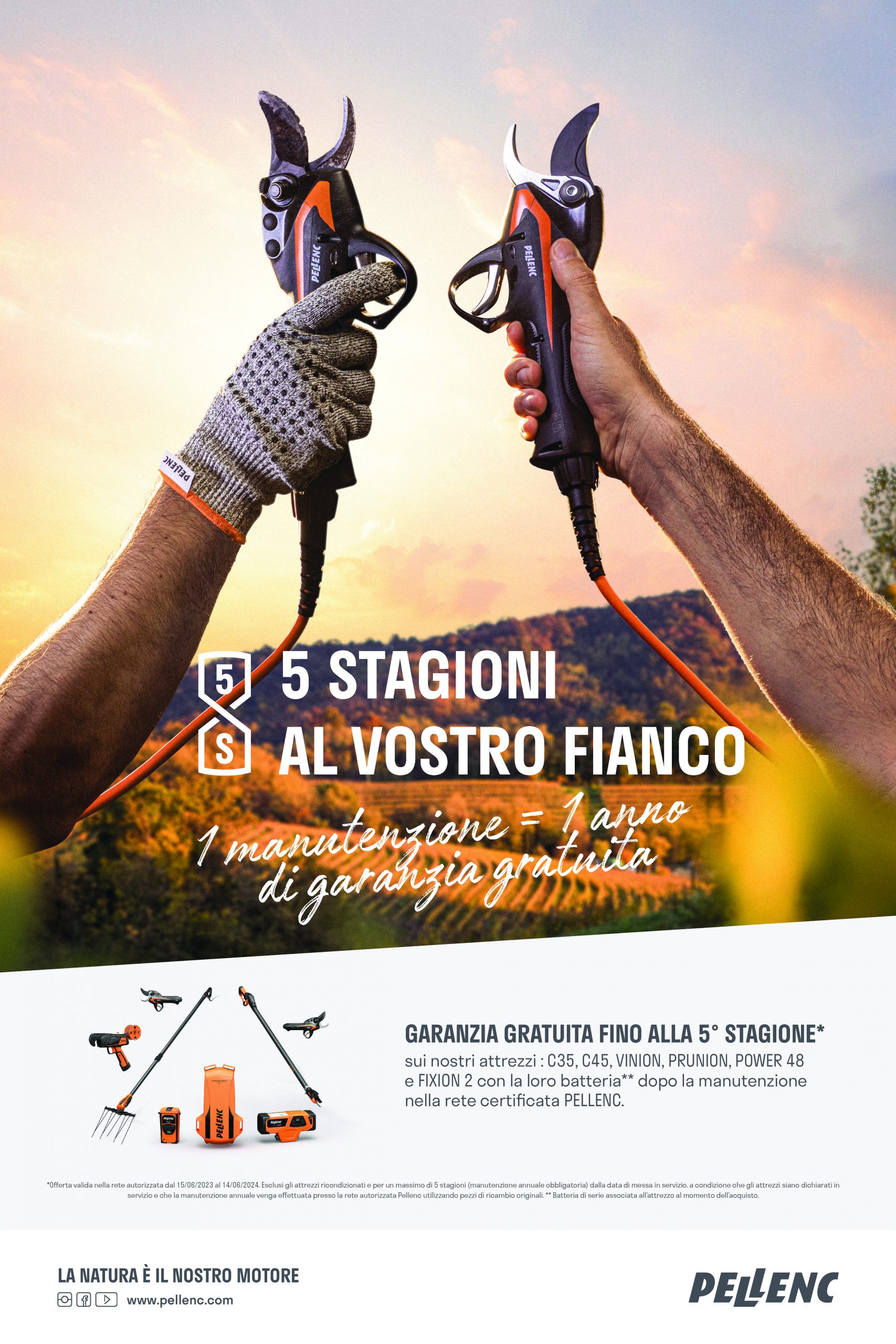 Gentili Clienti vi informiamo che con l’offerta 5S potrete beneficiare di un’attrezzo in garanzia fino alla stagione successiva.