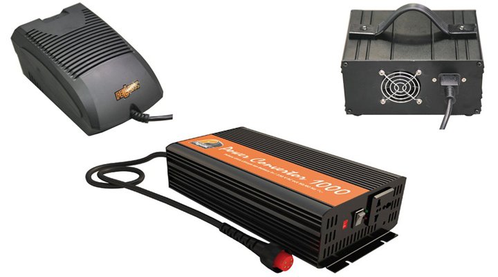 È disponibile POWER CONVERTOR 1000, il convertitore che trasforma la tensione della batteria in 230 V CA e permette a qualsiasi apparecchio elettrico inferiore a 1.000 W di funzionare in modo autonomo: elettrodomestici, trapani, martelli pneumatici e così via. Sono inoltre disponibili caricabatterie standard 1,2 A – 2,2 A e rapido (Quick Charger).